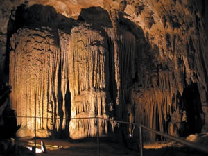 The size of a gothic cathedral, the cave caused my jaw to drop slightly as we took in the view of a stalagmite as big as a house, glistening as it continued its millennia long journey towards the ceiling. It was a moment to savour, but as we turned another corner the tunnel gave way to an even more extraordinary scene. Imagine an underground valley, with steep walls plunging a hundred metres deep into a dark river below.